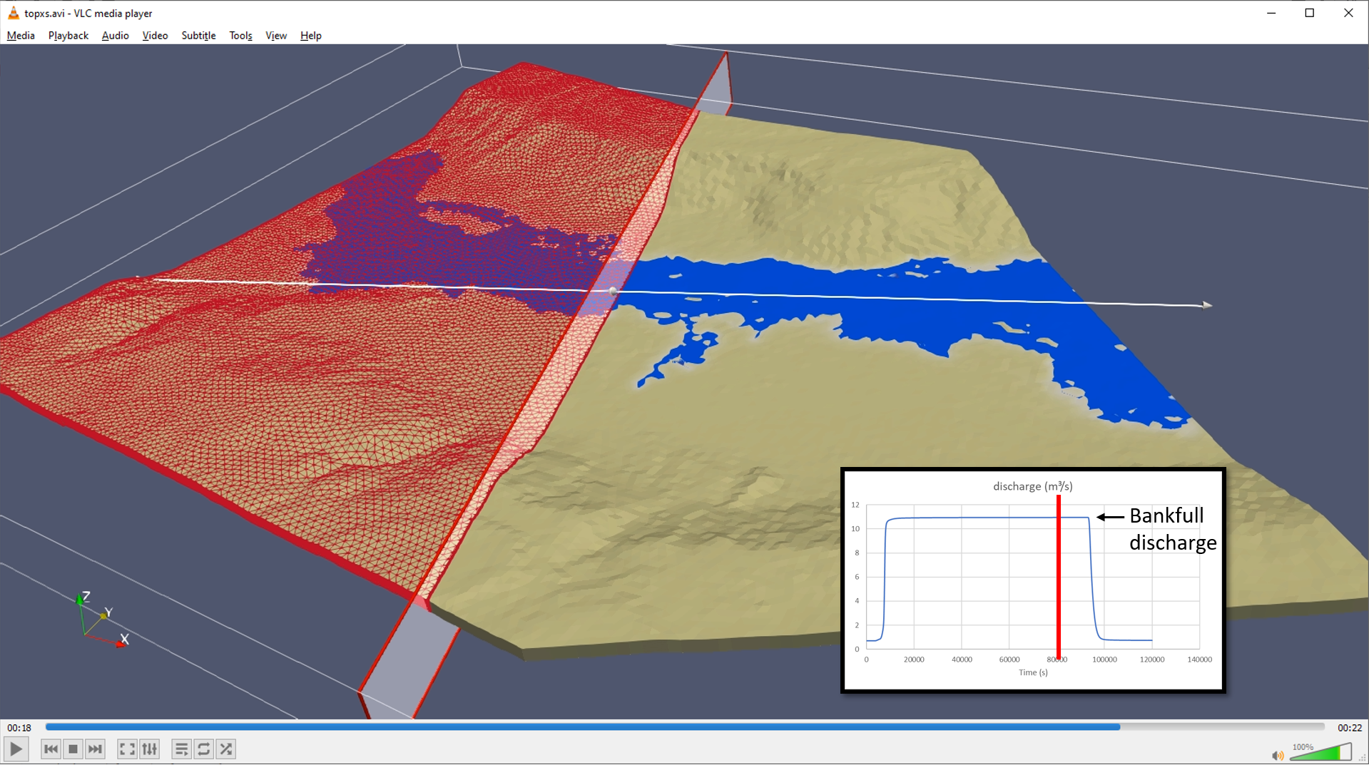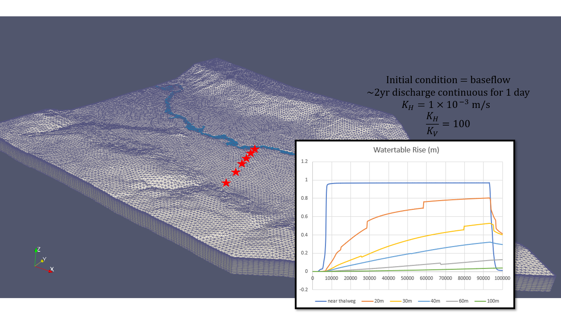Watch the channel’s influence on water table elevations, even given highly conductive material properties: